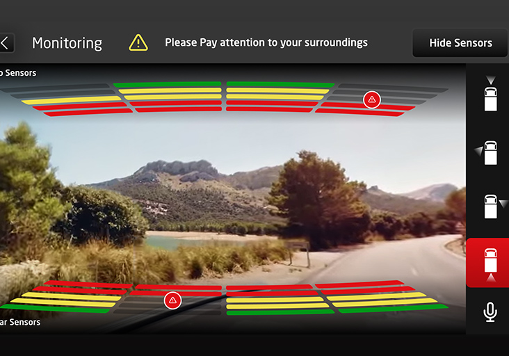Visible and audible alerts displayed on the MyIsuzu Co-Pilot AV system.